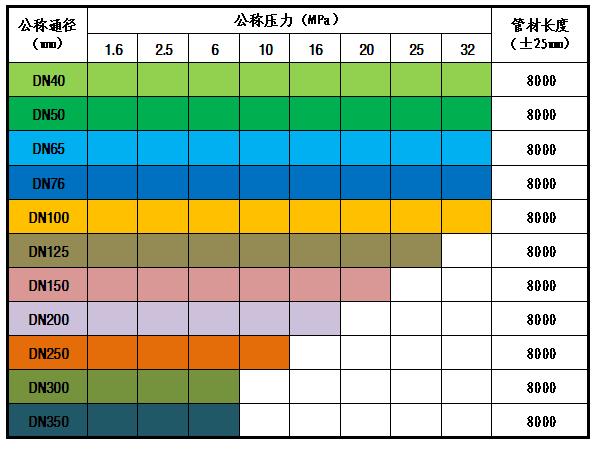 管材规格参考表